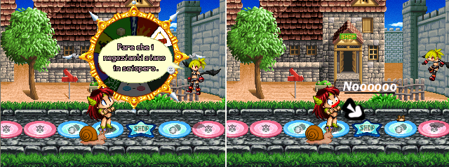 La casella INN rappresenta la locanda, dove Nono può riposarsi e salvare la partita;Lo SHOP è il classico negozio nel quale fare rifornimento di oggetti ed equipaggiamenti;